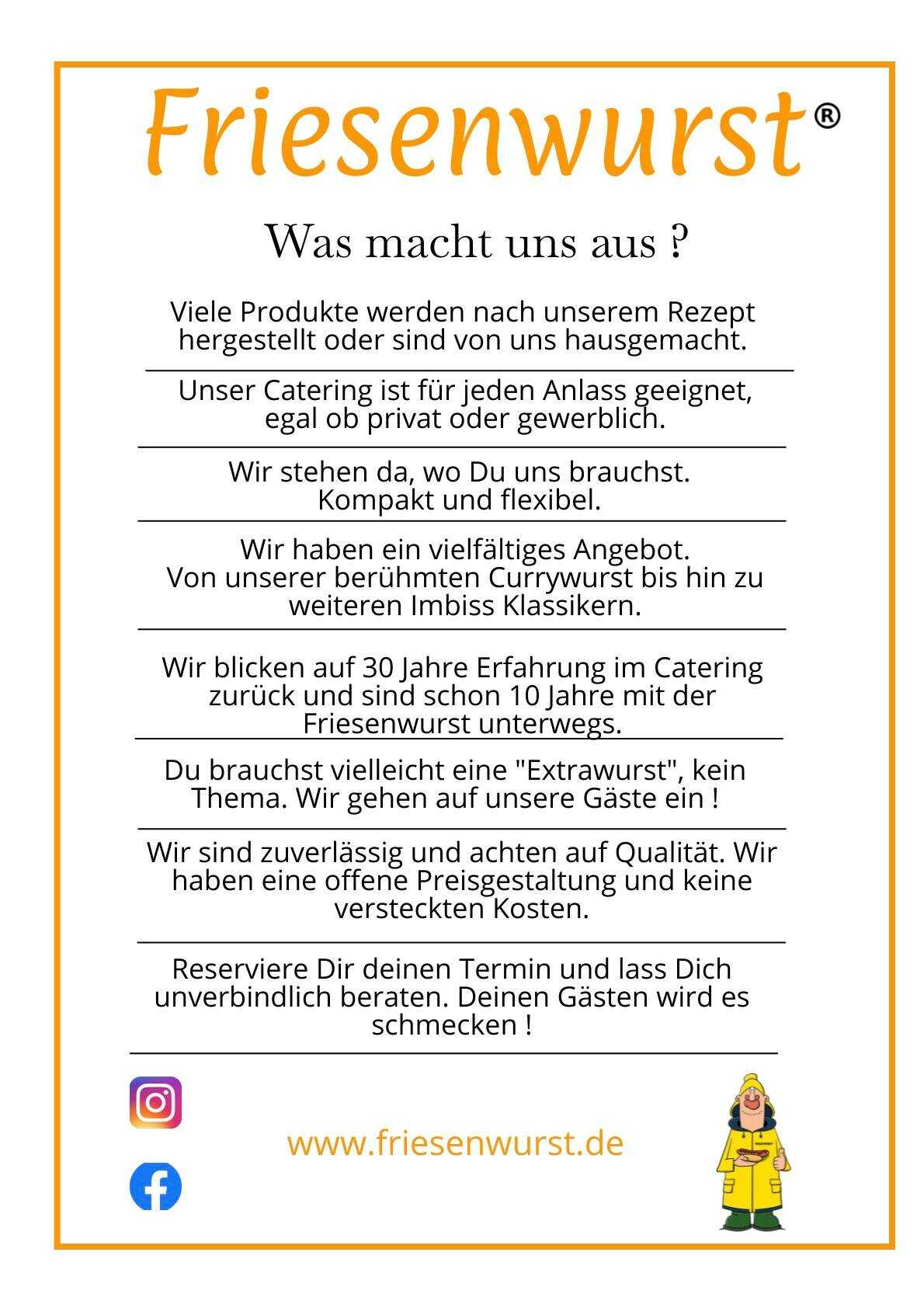 Das Team von der Friesenwurst kommt mit Imbiss Klassikern zu deiner Party, Feier, Polterabend, Firmen Jubiläum usw.
